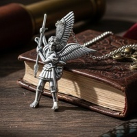 Archangel Michael Sterling Silver Pendant, size 2.43 cm wide x 3.81 cm high.