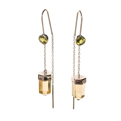 Single terminated Citrine & faceted round Peridot Drop Earrings set in 925 Sterling Silver, approximate size 7mm wide x 61mm long including hook.