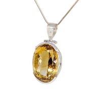 Faceted natural oval Citrine Pendant set in 925 Sterling Silver